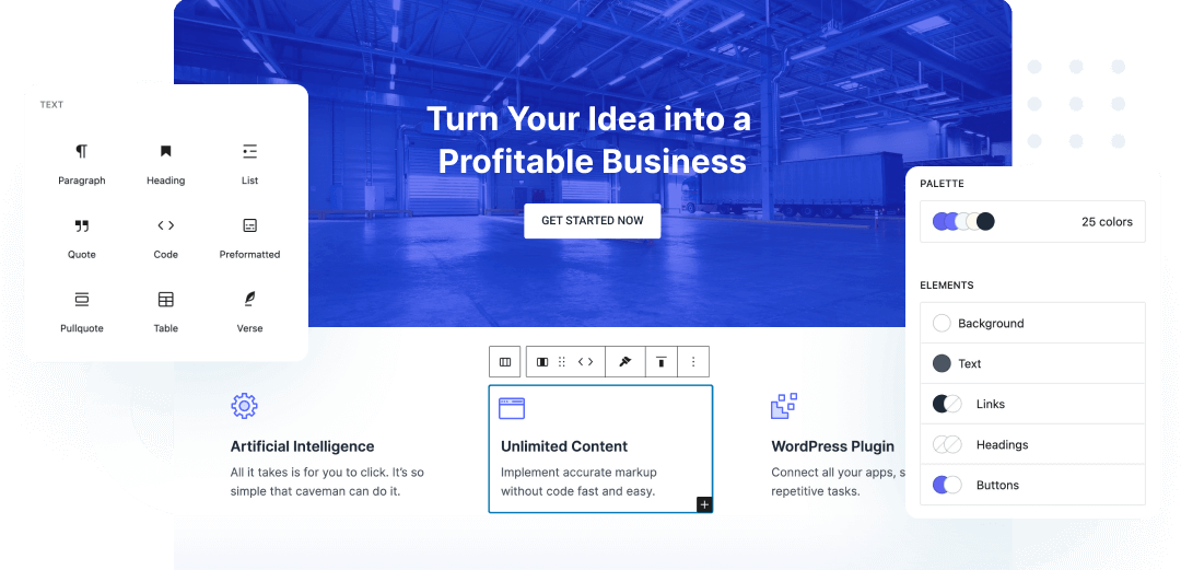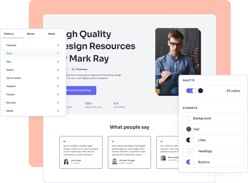 Herramientas de diseño interactivas y sus numerosas opciones de personalización para personalizar todo lo necesario para construir el sitio totalmente funcional de tus sueños.